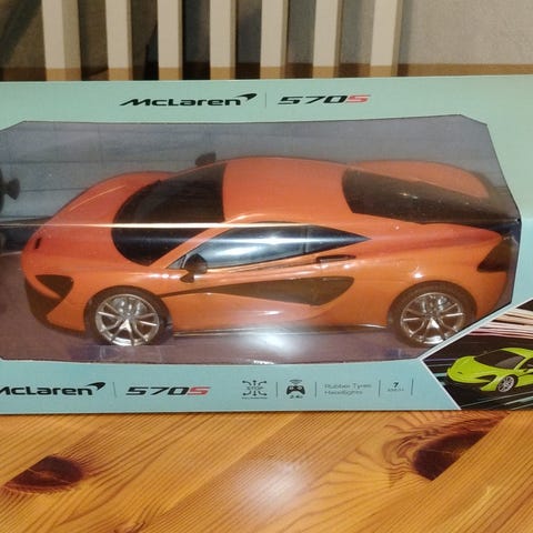 Myydään uusi, avaamattomassa paketissa oleva alkuperäinen McLaren 570S -RC-auto mittasuhteessa 1:16.
