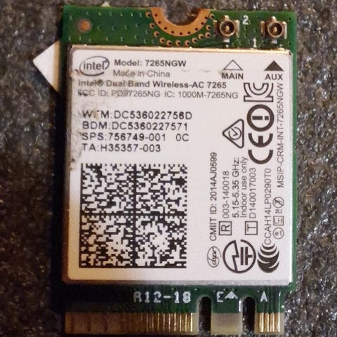 Intel Wireless-AC 3165 tietokoneen komponentti