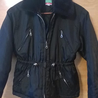 Lämminvuorinen erilainen talvitakki - varsin mainio pieneen hienosteluun! Takkia käytetty pari kertaa juuri sellaisissa tilanteissa - kunto kuin uudella. Musta, karvakaulus irroitettava, jännät yksityiskohdat, vetoketjulliset sivutaskut - myös rintataskut. Pieni erikoisuus: takissa on povitasku!!!! Takki soveltuu sekä tytölle että pojalle!!!