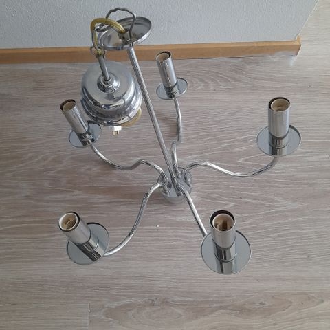 Myydään ylimääräiseksi jäänyt kaunis kuuden valonlähteen kattovalaisin. Päätysakaroita voi kääntää haluttuun kulmaan. Valaisimessa kaksi lamppua kiinni, loput jää seuraavan ostettavaksi.