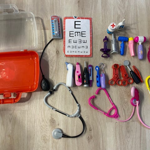 Lääkärin muovinen työväline lääkärileikkiin