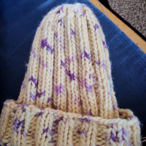 Kudottu Novita hygge 100% villa. Kaikenkokoiseen päähän sopiva.