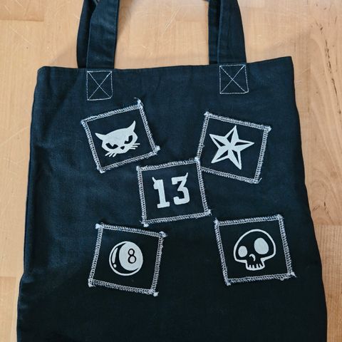 Putkikassi, kankainen hevoset -kuosi. Sivutaskun vetskarista ”vedin” puuttuu, voi kuitenkin avata ja sulkea