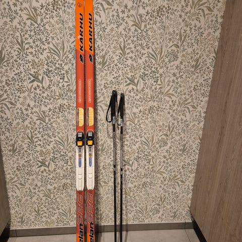 Peltonen pitopohja sukset NNN siteillä 130cm ja Omega sauvat 120cm.