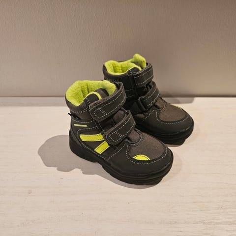 Käyttämättömät lasten talvisaappaat, kengän sisäsivussa vetoketjut helpottamaan pukemista ja edessä kiristysnauhat. Koko 22. Vain nouto