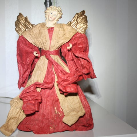 Enkeliaiheiset joulukoristeet. Isoa enkeliä voi pitää pöydällä tai laittaa kuusen latvaan.