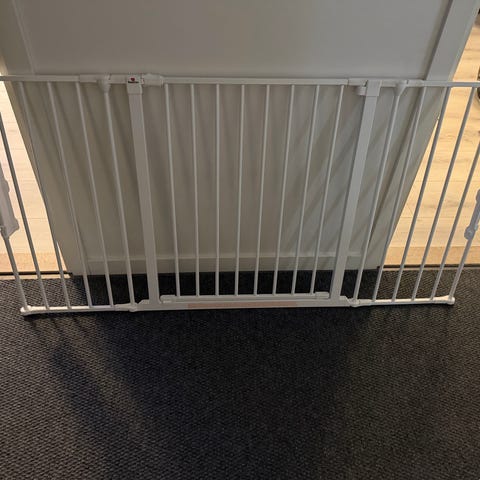 BabyDan XL Flex Lasten turvaportti, valkoinen. Tämä turvaportti on suunniteltu estämään lasten pääsy tiettyihin tiloihin, esimerkiksi takan läheisyyteen. Materiaali on metalli ja väri valkoinen.
