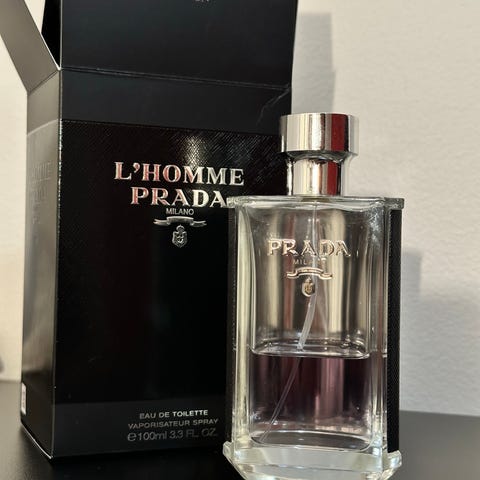 Pradan miesten hajuvesi. EdP, jäljellä noin 70 ml. Kuva 4 näyttää käyttöasteen.