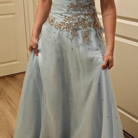 Myynnissä kaunis vaaleanpunainen vanhojentassimekko koossa 36/S (n.170 cm pituinen tanssija) , tanssittu yhdet tanssit eli uudenveroinen.😊