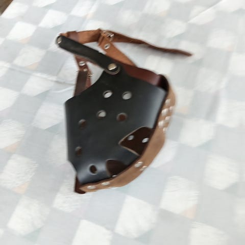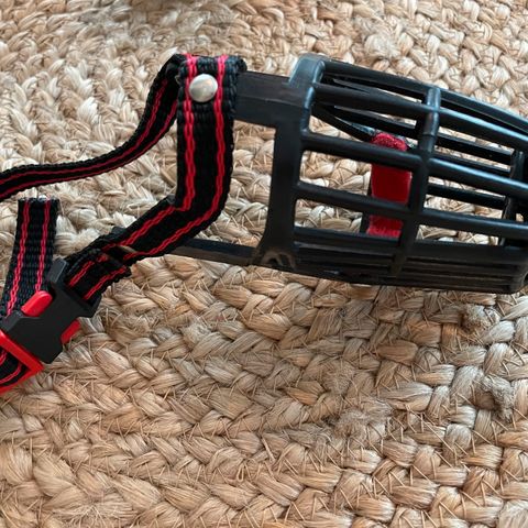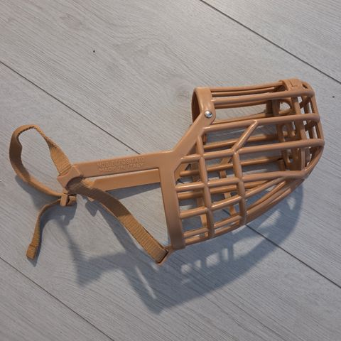 Uusi koiran kuonokoppa, on liian suuri meidän kääpiömäyräkoiralle. Maksaa mustissa ja mirrissä 17€. En voinut palauttaa koska tuli pieni hampaanjälki kun sai pois päältä, näkyy kuvassa