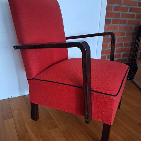 Vanha kaunis puinen nojatuoli. Tukeva. Istumiskorkeus 44cm.