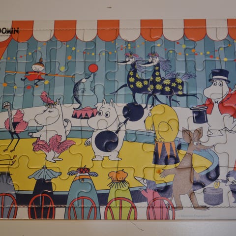 Muumi palapeli. Palapelissä on 60 palaa. Palapeli on kaupan pakkauksessa ja avaamaton.