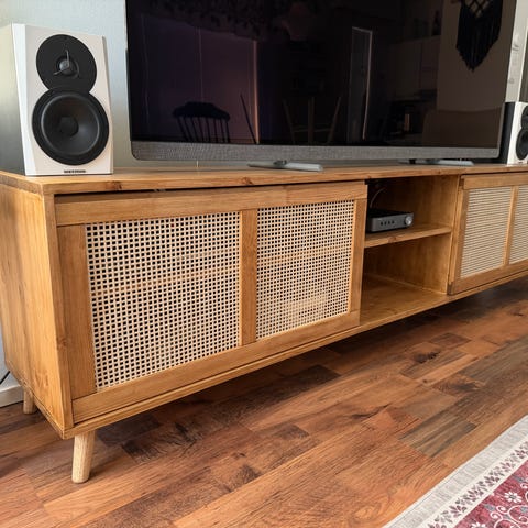 Myydään tarpeettomana kunnostettu tv-taso.