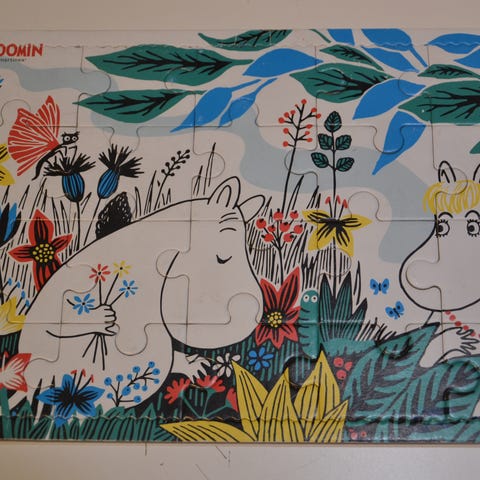 Reunuksilla oleva muumi palapeli. Palapelissä on 40 palaa. Erittäin siisti ja uudenveroinen.