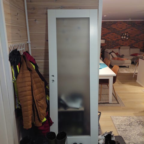 Ulkopuoli valkoinen alumiini, sisäpuoli lähes peittävä/valkoinen läpikuultomaali.