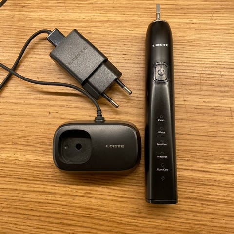 Noin viikon käytetty musta Loiste sähköhammasharja täysin toimiva laite mukaan 3kpl uusia medium vaihtoharjaspäät