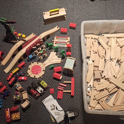 Myydään hyväkuntoinen paristoilla toimiva juna ja junaan kuuluva rata, jotka tulevat siistissä pienessä metallirasiassa. Veturin katon kulmasta on lohjennut pieni pala, tämä ei vaikuta junan käyttöön.