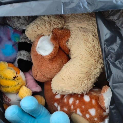 Annetaan pienelle leikkijälle leluja, kaikki kerralla. Koiratalous. Vain nouto Lehmosta.