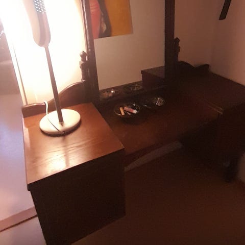 Leveys alimmasta listasta mitattuna 68.5cm, pöytätason leveys 64cm, syvyys 37cm, korkeus 243cm, peilin leveys 57cm