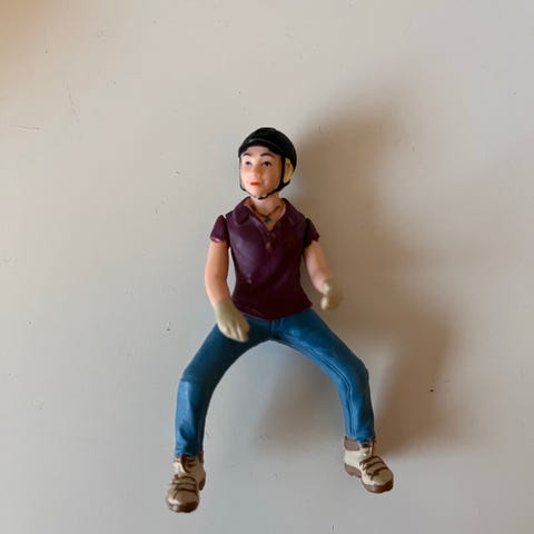 Schleich ratsastaja Milla. Vaaleat ratsastushousut, vaaleanpunainen T-paita ja mustat ratsastussaappaat.