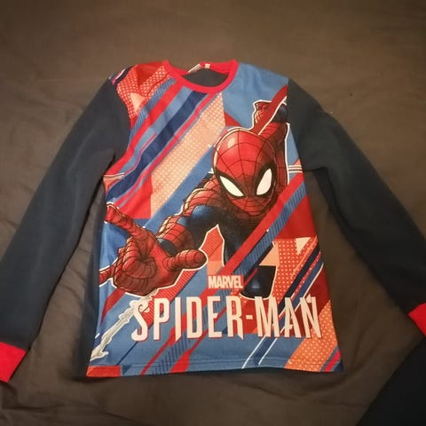 Myydään lämmin pusero, fleeceä ja etupuolella Spidermanin kuva. Ehjä, hieman nukkaa on tullut, näkyy kuvassa. Materiaali polyesteria.