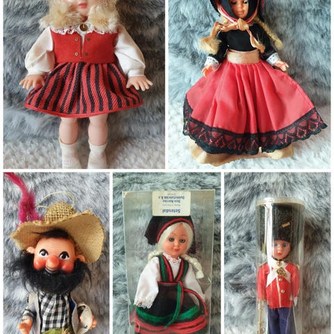 Kuvan mukainen koristenukke ehkä 80-luvulta. Korkeus n. 43 cm.