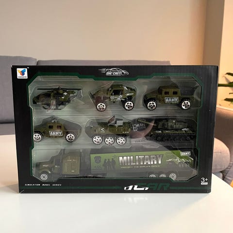 Kokoelma erilaisia lelusotilashahmoja ja ajoneuvoja. Sisältää lentokoneita, tankkeja ja ambulanssi sekä erilaisia sotilashahmoja ja intiaaneja.