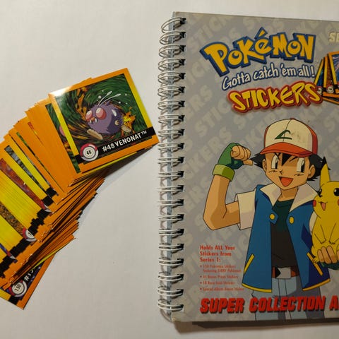 Pokemon tavaroita. Tarroja, tarrakirja yms