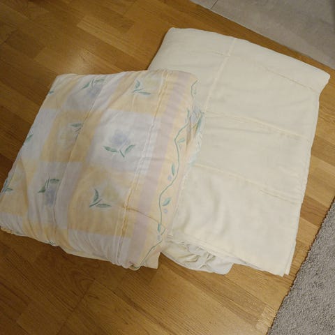 Annetaan vanha paripeitto, lakanat ja pieni tyyny jatkokäyttöön (tyynyjä saattaa löytyä vielä useampi matkaan) - ehkäpä eläimille tai muuhun jatko- tai kierrätyskäyttöön? Haku meiltä tai Palokan kaupoilta omien menojeni mukaan. En varaa.