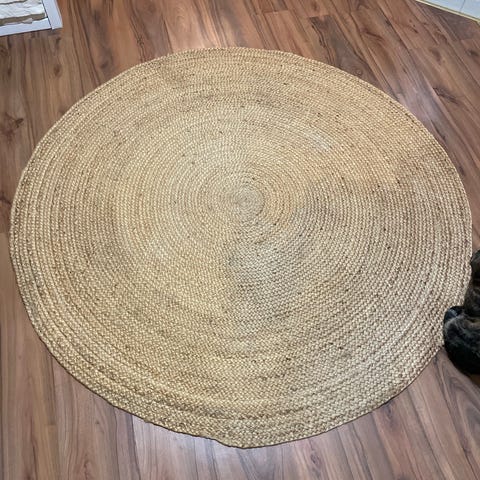Vekeltä ostettu Anno merkkinen juuttimatto pyöreä, halkaisija 160cm. Terassilla ollut vähän liian pitkään syksyn