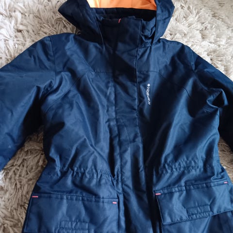 Icepeak toppatakki koko 140. Edessä vetoketju ja kolme vetoketjutaskua (taskuläpät somisteena). Irrotettava huppu. Hupussa tekoturkis irrotettavissa.