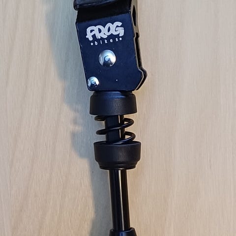 Käyttämätön Frogin alkuperäinen säädettävä seisontatuki, joka valmistajan mukaan tarkoitettu sopimaan pyöriin, joiden rengaskoko on 20"... 26" tuumaa.