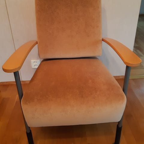 Käytetty Pohjanmaan kalusteen nojatuoli, ruskea sävyinen. Ollut vähällä käytöllä, istuin jämäkkyys hyvä, ei pehmennyt, kangas ehjä. Pesty tekstiilipesurilla. Nouto.