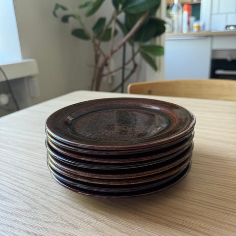 Kotimaisen Kermansaven ja Englantilaisen Cinnamonin keittolautaset / syvät lautaset. Halkaisija n. 20 cm. Yhteensä 16 €.