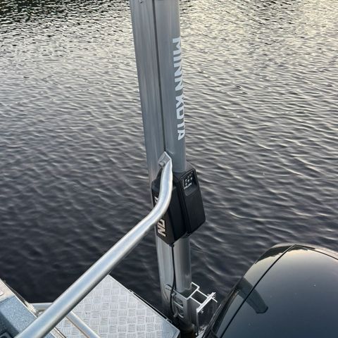 Minn Kotan luotettava keulasähkömoottori. Ostettu 11/20. Koneessa kiinni pikajalan koneenpuoleinen osa. Toinen puoli jää veneeseen.