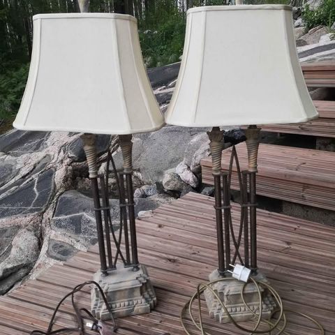 Kaksi pöytävalaisinta, yht. 40€. Siistissä kunnossa, toisessa lampussa takana pisteen mallinen jälki (kuvassa). Mukaan saa myös mustat varjostimet jos haluaa