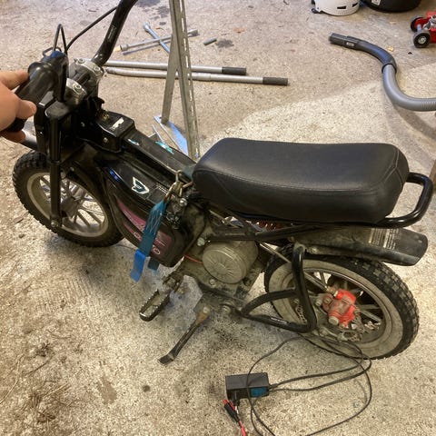 Miinuksia=kaasuvaijeri on katkennut, muuten toimii hyvin. Hyvä kesäpeli, moottorina toimii 50cc joku wandamotorilta tilattu pyörän apumoottori. Myyjänä nuori.