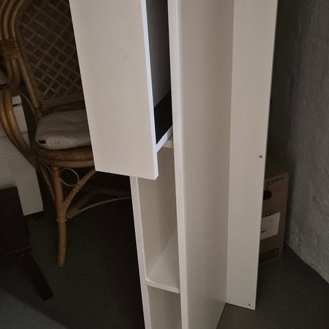 Puinen kirjahylly. Muutoin kohtalaisen siisti, vaatii uudet hyllylevyt.