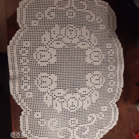 Käsin virkattu pitsiliina valkoinen