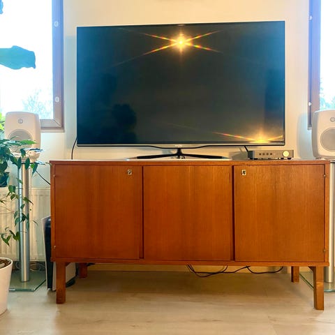 * senkki, tiikkisenkki, tiikki, teak, puu, puinen, tumma puu, tiikkilipasto, tv-taso, tv taso, taso, sivutaso, kukkataso, lipasto, vintage, retro, 60-luku, midmod, mid century modern