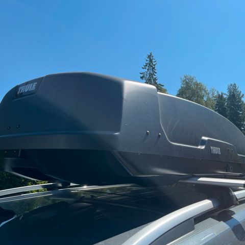 Vuokrataan laadukas ja tilava Thule Motion XT XXL suksiboksi + tarvittaessa kattotelineet Thule Wingbar Evo.