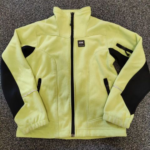 Neonkeltainen liukuvärinen toppatakki, väri vaalenee alaspäin. Merkki Icepeak, koko 140 age 9-10.