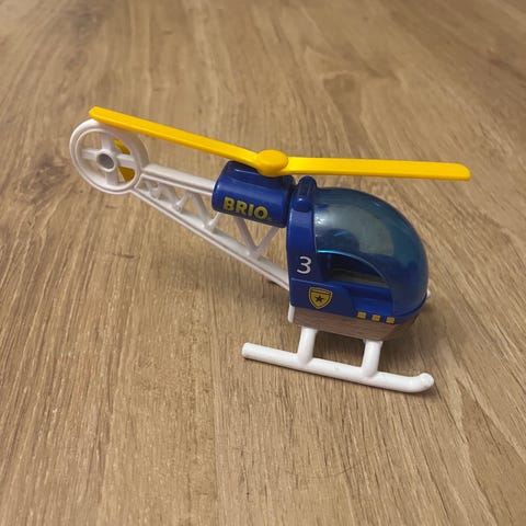 Myydään lähes koristeena ollut Brion pelastushelikopteri. Puisen ukon saa irti lentokoneesta.
