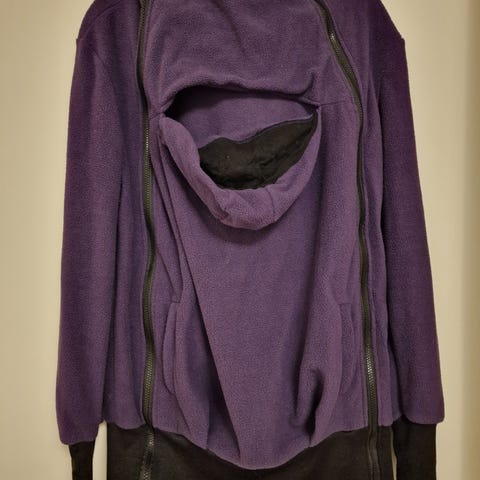 Tikkitakki raskauteen (sivuilla vetoketjut) ja vauvan kantoon (erillinen osa vetoketjuilla). Soveltuu hyvin nollakeliin ja pikkupakkasiin. Yhden lapsen kanssa käytetty. Koko 36, normaalisti käytän S.