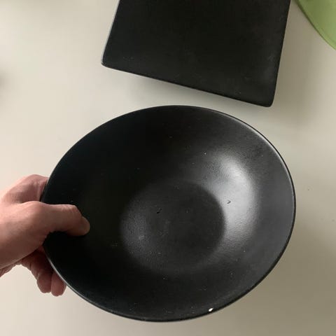 Annetaan usi käyttämätön valurautainen pannu. Pannun pintaan jäänyt steariinia kun säilytetty kynttilöitä.