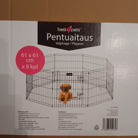 Sopii koirien aitaamiseen tai kuljetukseen. Väri musta.