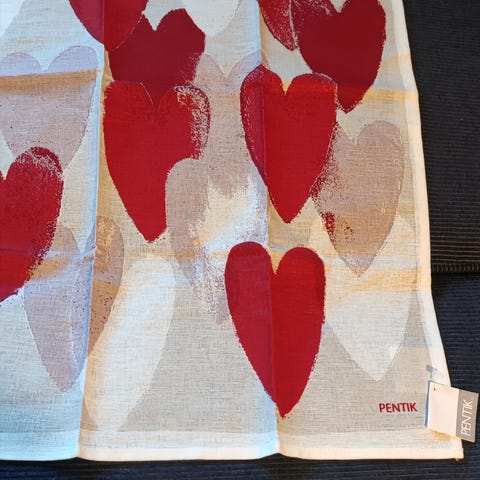 Koko 70 cm x 46 cm. 50 % pellavaa, 50 % puuvillaa. Pesu 60 asteessa. Hinta 7 euroa, mahd. lähetyskulut ostajalle. Kulkeutuu omien menojen mukaan välillä Harjavalta-Nakkila-Ulvila-Pori tai tulee postilla kirjeenä kahden ikimerkin hinnalla (5,50).
