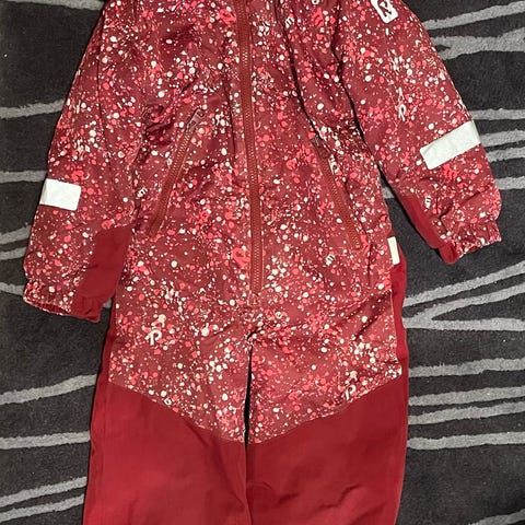 Reima toppahaalari koko 110. Polvissa ja heijastimissa kulumaa (katso kuvat), jalkalenksut ehjät. Pesty hajusteettomasti. Tämä menee vielä hyvin vaikka varahaalarina.