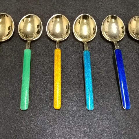 Tillander 50-luvun hopealusikat rasiassaan. Erinomainen kunto. 916 leima.
