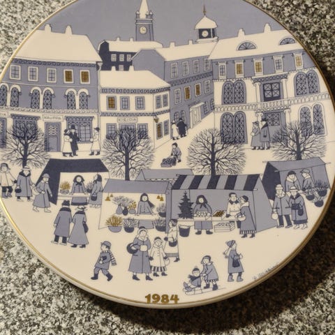 Arabia joululautanen vuodelta 1985, suunnittelija Raija Uosikkinen.